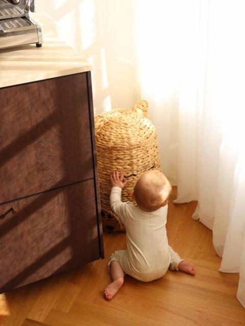 Tazia Kurven har fundet sin plads i det stilrene køkken hos @wilsholm. Den karakteristiske pingvin tilfører et legende udtryk, mens den gemmer legetøj og småting af vejen.