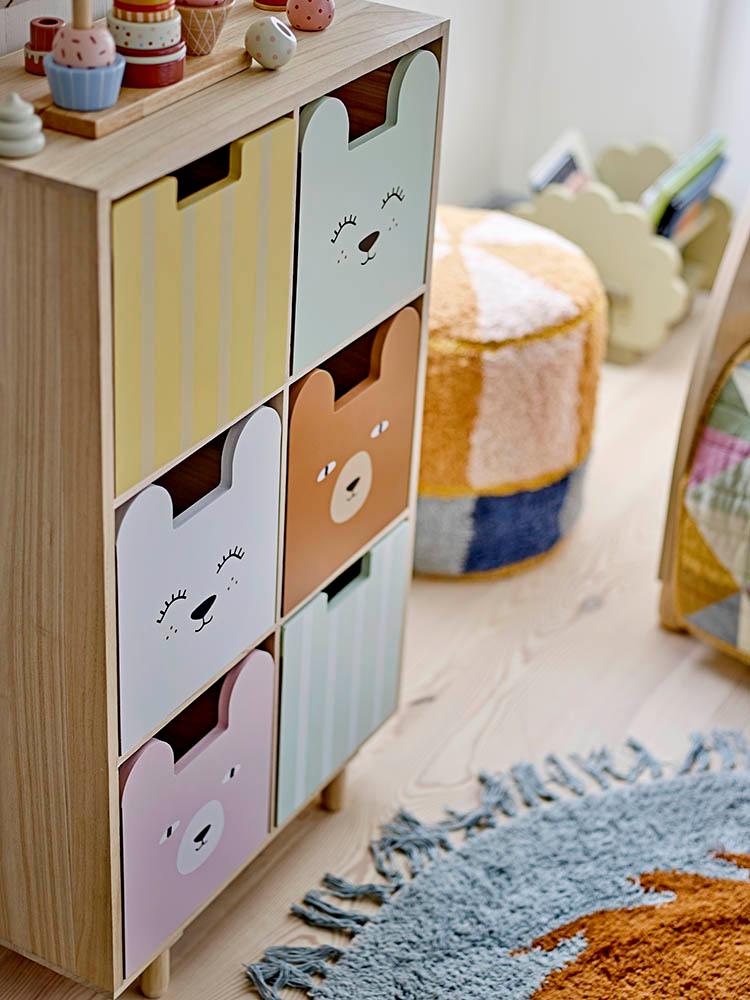 Opdag Calle Bogreolen med vendbare skuffer, der kan tilpasses efter hjemmets stil og barnets humør. Vælg mellem søde dyremotiver, pastelfarvede striber og prikker eller et helt enkelt look med lyse træfronter. Den alsidige reol kan vendes både lodret og vandret, hvilket giver utallige indretningsmuligheder.