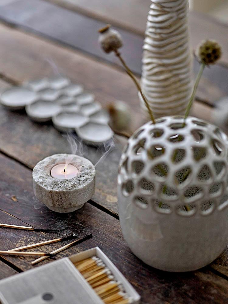Dalin Votive & Candle Holder, Brun, Sandsten