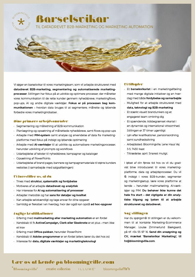 Er du analytisk og struktureret? Har du interesse for datadrevet marketing, segmentering og marketing automation? Motiveres du af at arbejde med nyhedsbreve, marketingflows, AI og digitale værktøjer? Og trives du i en international virksomhed, hvor tingene ikke står stille? Så er det måske dig, vi søger.