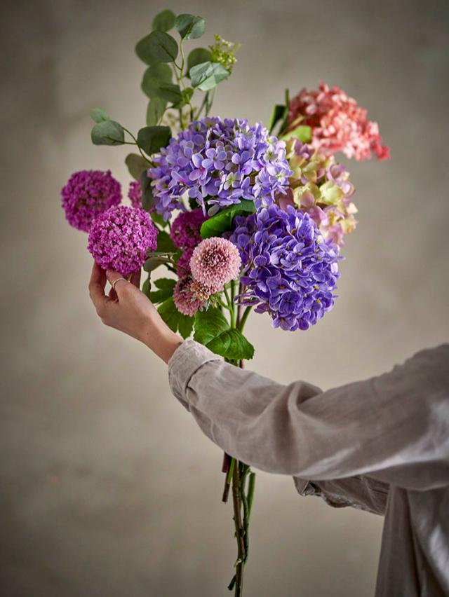 En buket af kunstige blomster bringer varig glæde i hjemmet. Med deres tidløse skønhed tilføjer de charme og elegance til ethvert rum. Vi har gjort det nemt for dig med vores fem færdigbundne, kommercielle buketter. Alt du skal gøre, er at pakke buketten ud og nyde den!