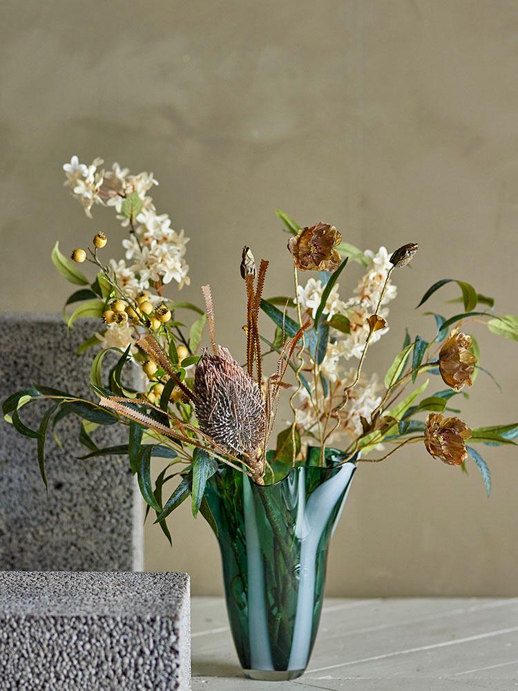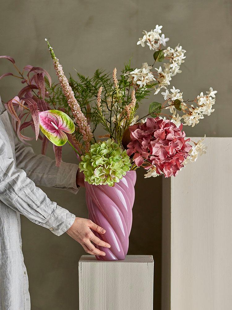 Ved at kombinere forskellige elementer, såsom kunstige og naturlige stilke, kan du skabe dybde og tekstur i buketten, hvilket tilføjer en unik charme til indretningen. Den rigtige vase fungerer som en scene, der fremhæver hver bukets skønhed. Dens farve og form kan fremhæve blomsternes delikate træk og øge deres tiltrækningskraft.