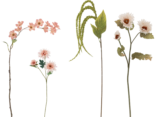 We’ve made it easy for you to find the perfect stems to create beautiful, artificial bouquets. Our talented stylists have put together inspiring combinations using decorative stems from the collection – ready to elevate your assortment and inspire your customers.