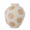The Byron Candle Holder by Creative Collection is a stoneware piece featuring a rounded shape with a flared top. Finished with a reactive glaze in soft beige and warm brown wavy stripes, it has a slightly grainy matte surface. Small variations in pattern and color intensity may occur, making each piece unique.