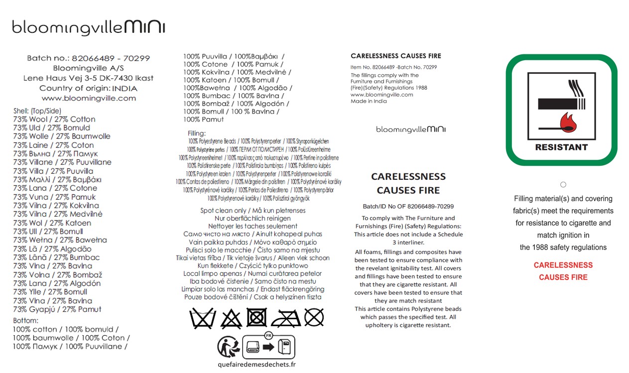 | Composition | 73% Wool, 27% Cotton, Filling: 100% EPS |