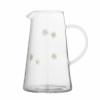 The Buzz Drinking Glass by Bloomingville is a clear glass set of two with raised bee and daisy motifs and soft yellow accents. Designed with gentle curves and slight ripples, the surface creates a fluid visual effect. Variations in pattern and color intensity may occur, making each piece unique.