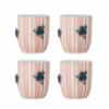 The Carry Plate by Bloomingville is a set of four stoneware plates featuring a creamy base with rose-toned stripes, deep blue berries with green leaves, and a light blue rim. Embossed and handpainted, small variations in pattern and color intensity may occur, making each piece unique.