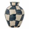 The Check Cup by Bloomingville comes in a set of four and is made of stoneware. The cups are hand-painted with a graphic checkered pattern in blue and light tones and have a warm reddish rim at the top. The hand-painted design ensures that each is unique.