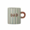 The Cherish Mug by Bloomingville is made of stoneware with a glossy glaze and vertical cream-colored stripes. The mug is decorated with the word “Mom” on one side and “Love” on the other, and features hand-painted details that add depth to the design. Small variations in pattern and color intensity may occur, making each mug unique.
