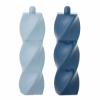 The Riley Pedestal Bowl by Bloomingville is a sculptural stoneware bowl with a glossy blue exterior and a twisted base. The light interior is decorated with subtle polka dots. Handpainted. Small variations in pattern and color intensity may occur, making each piece unique.