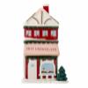 La Déco Gloria de Bloomingville est un train en céramique rouge, composé d’une locomotive et de deux wagons reliés. Il présente des rayures rouges et blanches peintes à la main, avec des roues et des encadrements de fenêtres peints en vert. De légères variations d’intensité des couleurs peuvent survenir, rendant chaque pièce unique.